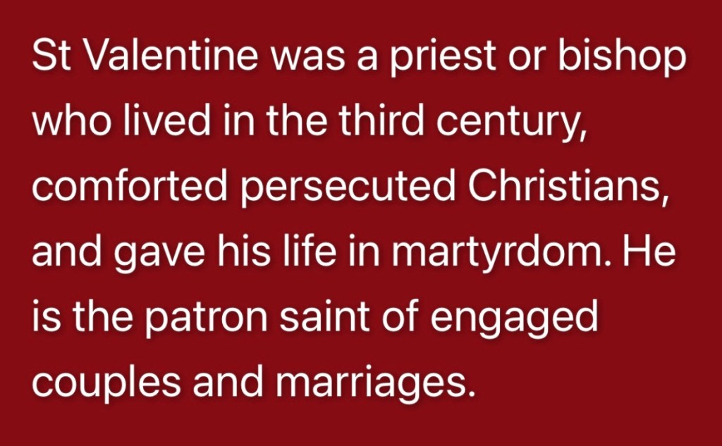 Saint Valentine, Patron of young couples and true lovers, intercede for me that I may find true love again.
