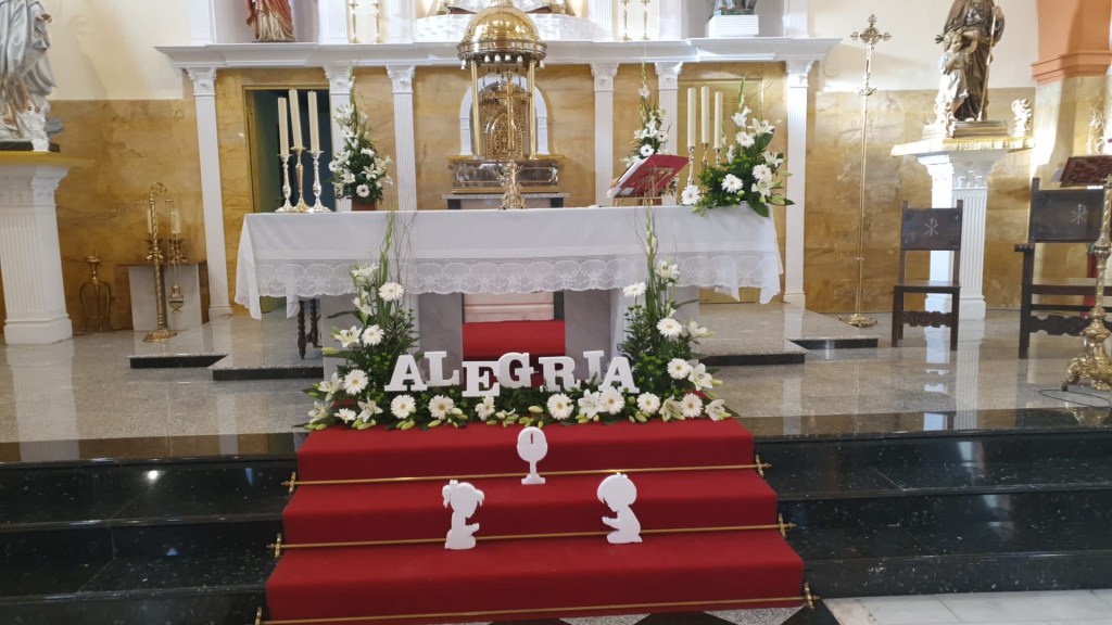 En este domingo que celebramos la Santísima Trinidad y justo antes de la fiesta del Corpus Christi, cinco de nuestros niños (Irene, Alberto, Edurne, Adriana y Carlos) habiendo pasado por la catequesis recibirán por primera vez a Jesucristo en la Eucaristía. No puede haber mejor momento para celebrar esto que hoy. ¿Qué enseña la Santísima Trinidad a estos niños nuestros? El amor y la unidad. La Eucaristía es el símbolo perpetuo del amor de Cristo por nosotros. También la llamamos comunión porque todos los que participan en el mismo banquete del cuerpo y la sangre de Cristo están llamados a una comunión, a una fraternidad de elegidos de Dios. Recibir la Eucaristía hoy por primera vez no debe convertirse en una ceremonia de graduación o un acto de fin de carrera; los padres (que son los catequistas naturales y primeros), los catequistas y toda la comunidad cristiana deben seguir acompañando a estos niños para que valoren la importancia del sacramento y la celebración de hoy siendo para ellos luz y ejemplo. Estos niños no volverán a comulgar con la ilusión de este día si sus padres no los acompañan a la Iglesia, a la misa de cada domingo, por ejemplo, estos niños no valorarán la celebración de hoy si no ven a sus padres ilusionados por estar allí, en la Iglesia, en la misa y recibir también la eucaristía. Pedimos en esta misa por estos niños que la Santísima Trinidad guíe, conduzca y aspire la verdadera fe y devoción a la santa eucaristía a estos niños de nuestra comunidad que hoy recibirán su primera comunión.