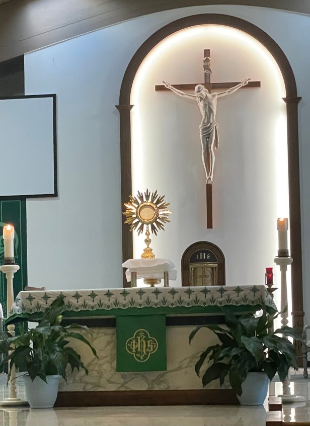 Ese mismo Jesús que salvó a los discípulos de perecer cuando lo invocaron en medio de la tempestad, es el mismo Jesús presente en esta santa asamblea. Es el mismo Jesús que recibisteis en la santa eucaristía cada vez que venís a la Misa. Es el mismo Jesús que está presente en los sagrarios de cada Iglesia. Es a él, a quien debemos dirigirnos cuando estamos aterrorizados y confusos. Es a él, a quien debemos dirigirnos con confianza cuando estamos presionados y a punto de caer. Es al mismo Jesús, al que debemos dirigirnos cuando la vida no nos da nada que esperar.